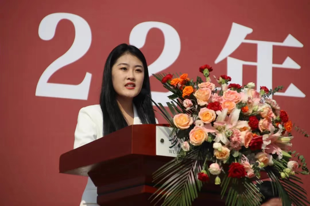 王董事长致辞过后,设计学院的教师代表陈静老师上台发言,她表示希望大家珍惜在校的美好时光,在各自选择的道路上遇见更好的自己。