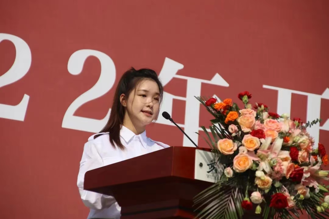 接着来自播音主持艺术学院的朱雨晴作为新生代表上台发言,表示他们将以崭新的姿态迎接人生中的又一挑战,为实现传媒事业的发展而不懈奋斗。