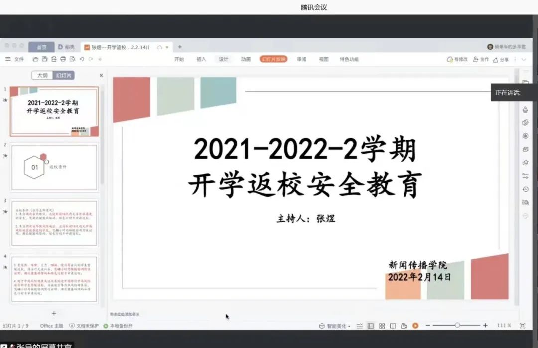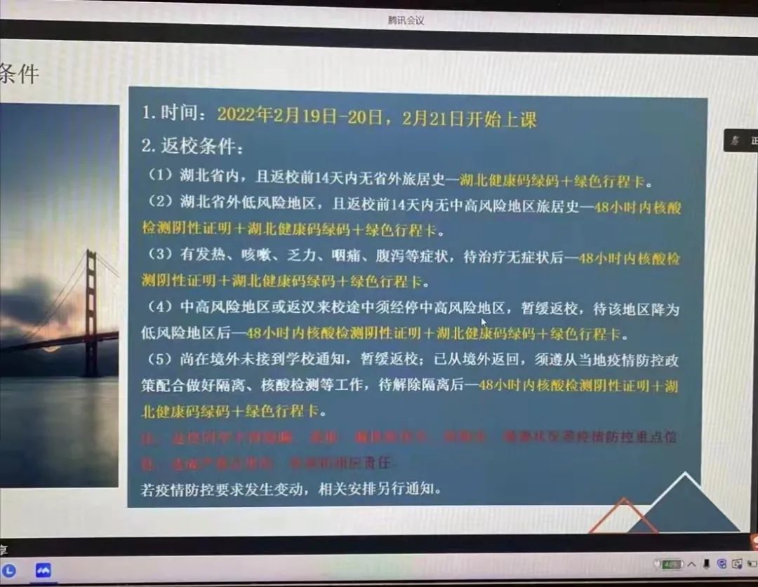 开学季即将来临,为做好2021–2022学年春季学期员工返校及疫情防控工作,公司毕业班发布返校通告,各年级分别于线上召开开学返校安全教育主题会议。会议由各年级辅导员主持,各年级全体员工参加本次会议。