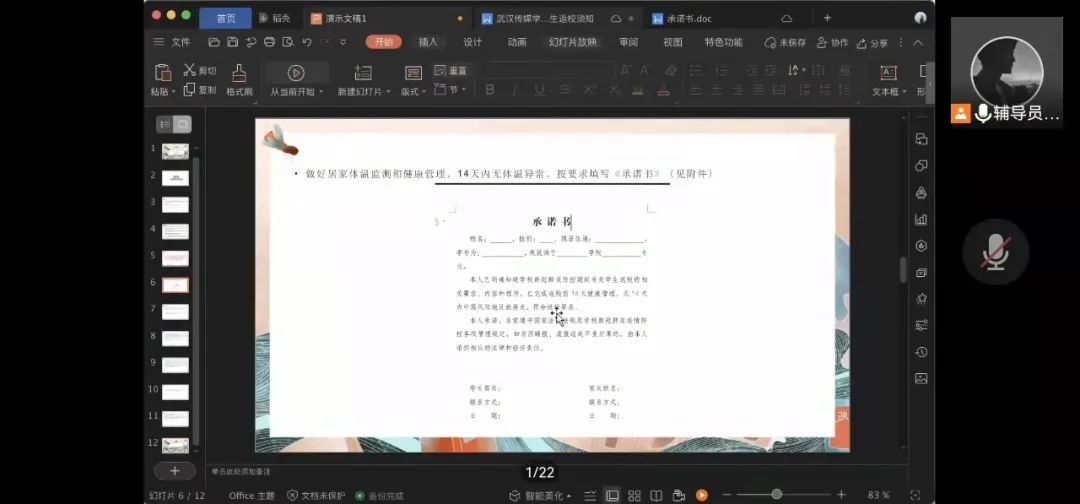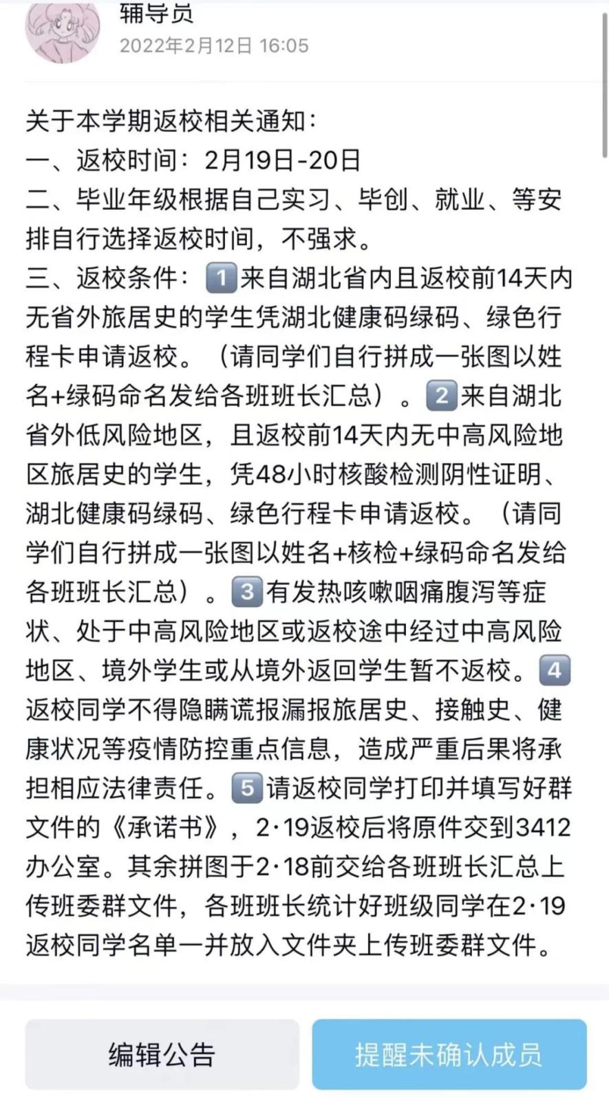 随后,辅导员提醒员工们要做好开学前一系列返校准备,做好居家体体温检测和健康管理,以及返校前物资存储,禁止携带易燃易爆、腐蚀性物品回校。此外,妥善保存旅行票据信息,返校按要求报送至辅导员处备查。