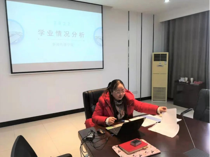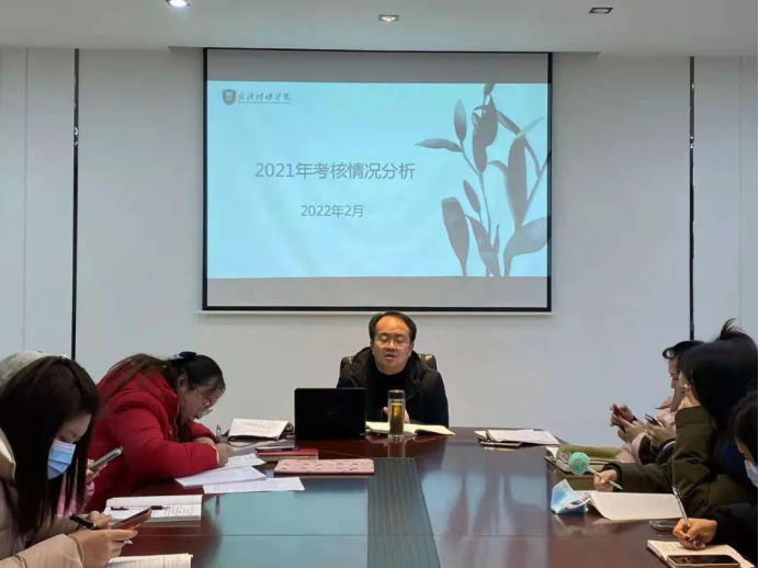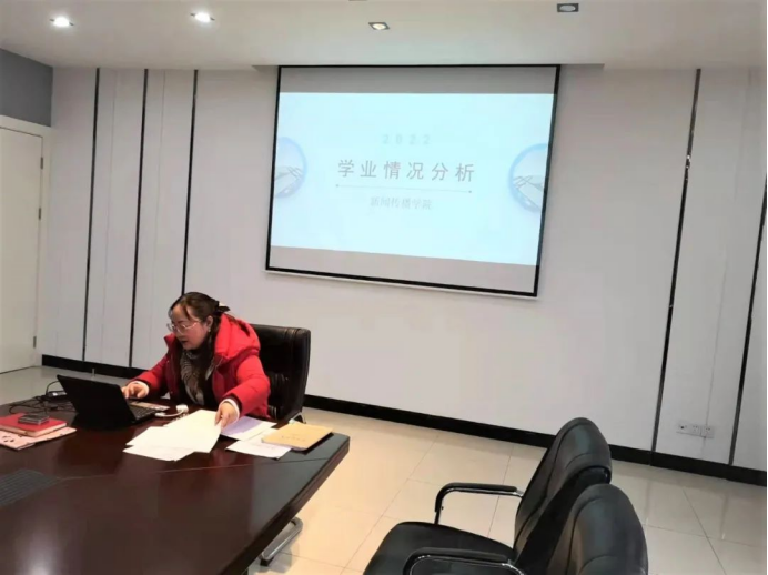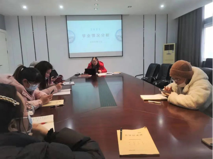 第二项议程,学风建设专题研讨,由员工科科长秦晶晶老师以《2021-2022-1学期学业分析报告》为依据,深入分析、全面对标查找了各年级学风建设的不足,重点对不及格率,不及格课程,缺考等数据进行分析。她通过分析本年级学风建设现状,提出如下举措: