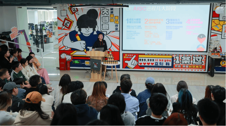 在讲座过程中,优矩互动(北京)科技有限公司首席创意官张科,以其深厚的行业洞察力和专业知识,为员工们悉心剖析了优矩AIGC技术的四个核心发展阶段。