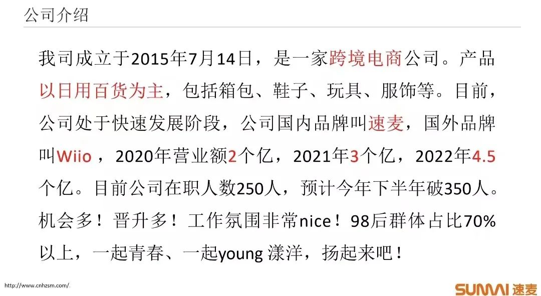 会议开始主要介绍了公司的基本信息。杭州漋海科技有限公司成立于2015年7月14日,是一家跨境电商公司。目前,公司处于快速的发展阶段,公司的销售业绩也稳步增长,是一个发展前景很好的跨境电商公司。公司目前在职人数250人,预计今年下半年破350人。对于要实习的员工们有着较多的机会。