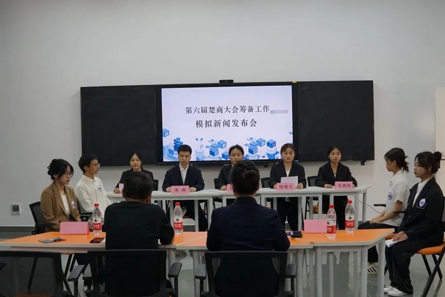 下半场第三组模拟新闻背景为:自2013年首次举办以来,楚商大会已成功举办了5届,为湖北经济社会发展做出了积极贡献。今年10月中下旬将在武汉举办“第六届楚商大会”,主题是“奋进新时代,建功先行区”。全国新闻工作者委员会将组织新闻发布会,以解答各方面关注的问题。