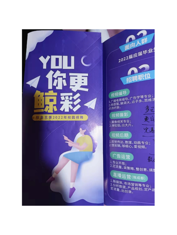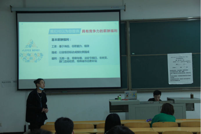 本次招聘会上,鲸鱼无限宣传人员通过播放PPT、面对面交谈的形式向2022届毕业生介绍了自己的公司、招聘职位和发展空间等。用宣传视频向大家展示了公司的多元化产品,完善的公司设施和超赞的公司福利。该公司拥有可记性极高的工作内容,还能很好的对数据化视频广告进行推广。