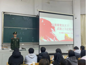为宣传国家征兵政策,鼓励热血青年学子应征入伍,报效祖国。21级员工于2021年11月28日晚18:00和晚20:00分别在6106和在3201教室参与了学校的征兵宣讲工作