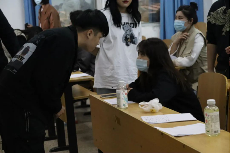 招聘单位介绍完毕后,公司给在场有意向的同学发放了面试报名表,并且还进行了现场面试,不少对该公司有意愿的毕业生们参与了选拔、面试等。