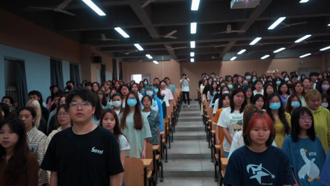 会议伊始,郑冰洁同志带领同学们奏唱国歌。