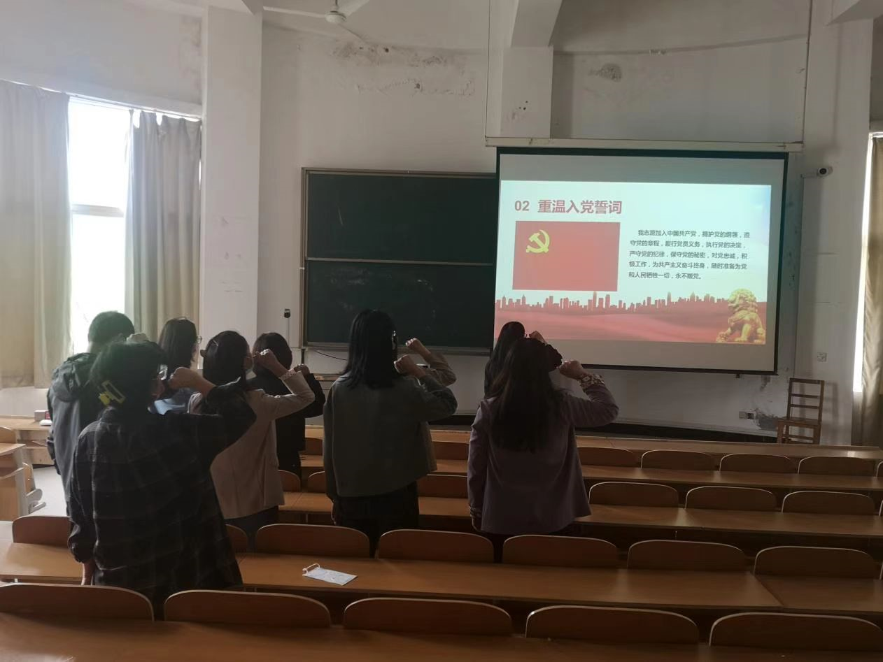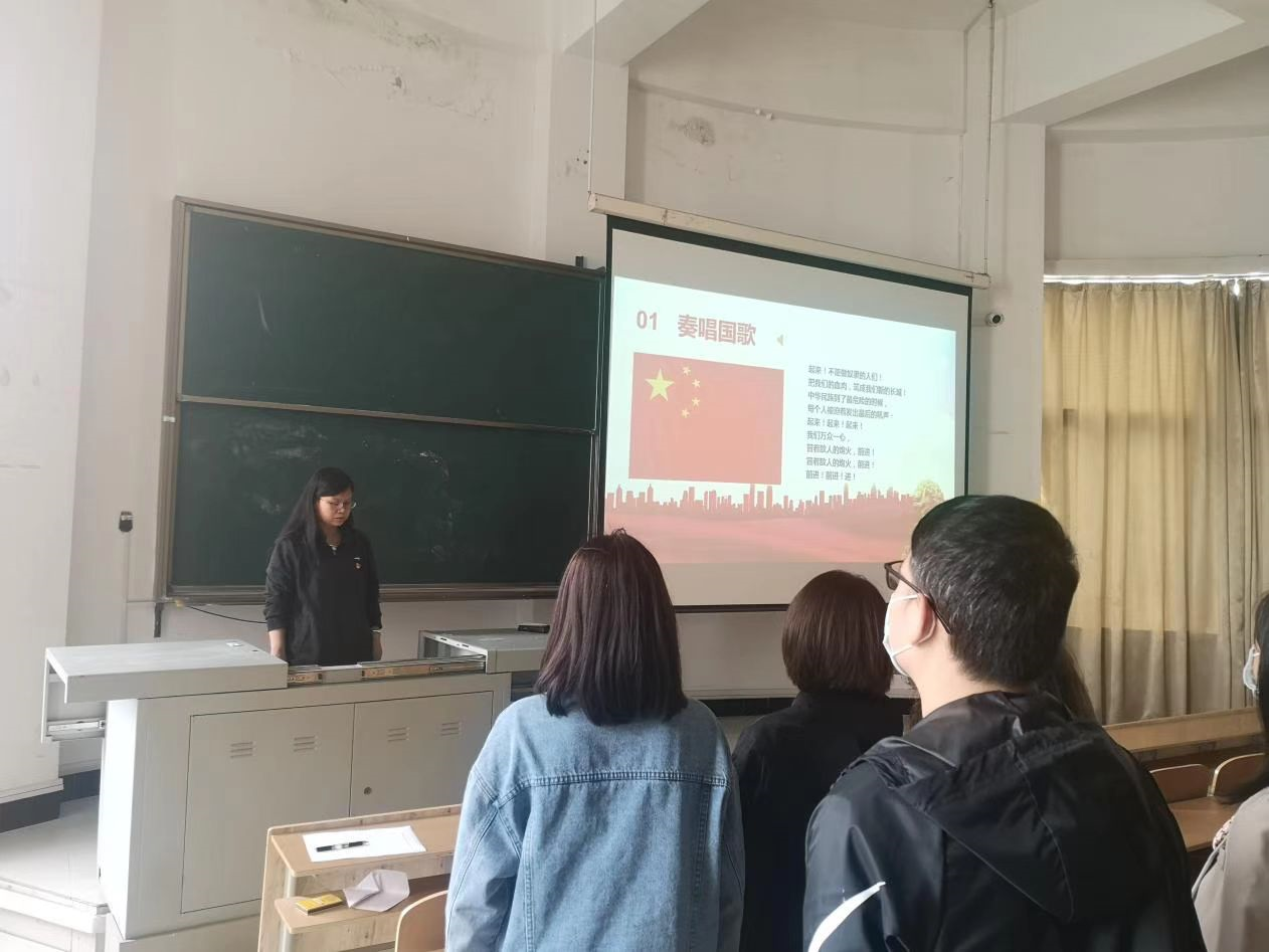 会议一开始,由王玲玲同志带领全体同志奏唱国歌、重温入党誓词。