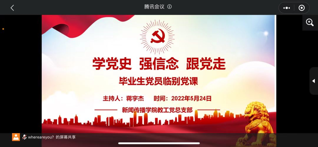 为进一步加强毕业生教育管理,认真做好组织关系转接、党员档案转移及离校教育工作,2022年5月24日球王会举行了线上毕业生党员临别党课,会议由公司党总支部组织委员蒋宇杰同志主持,球王会全体毕业生党员参加会议。