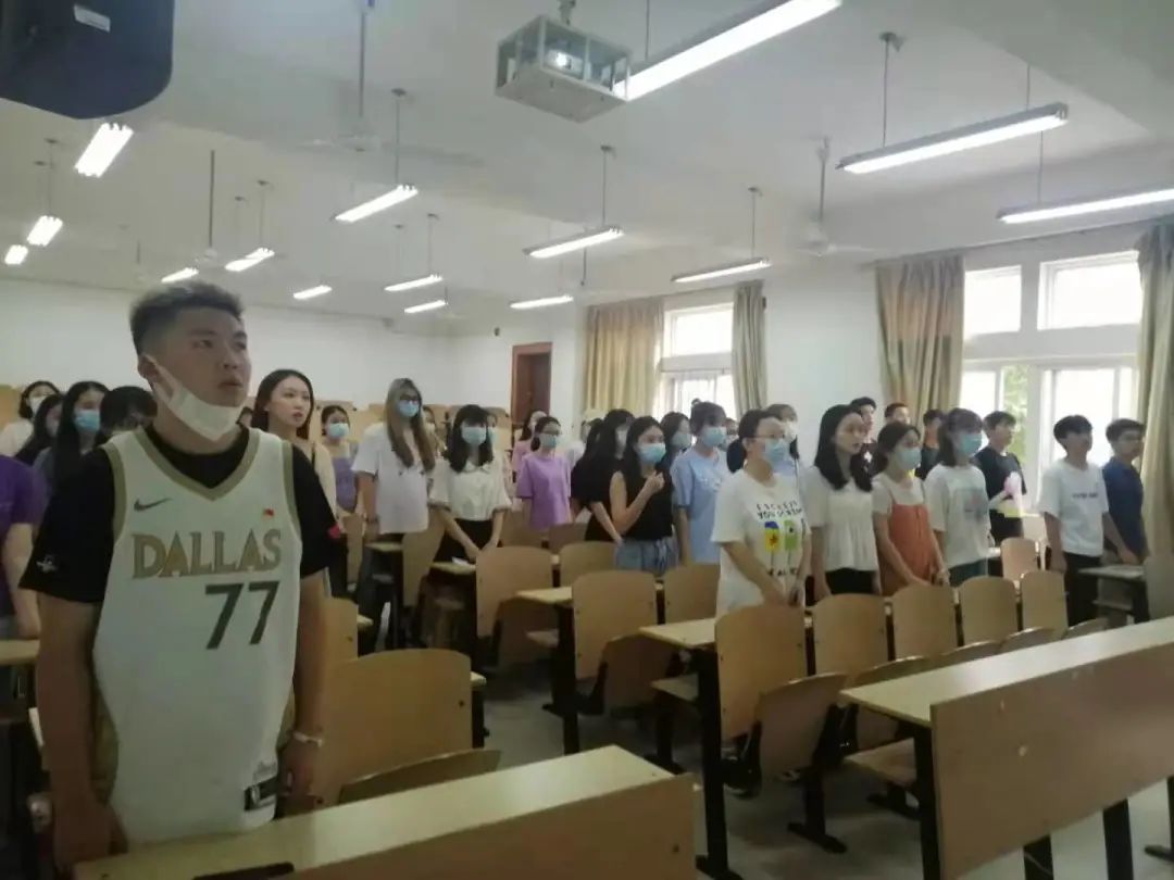 会议开始,全体党员同志起立奏唱国歌,重温入党誓词。
