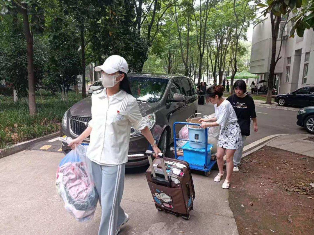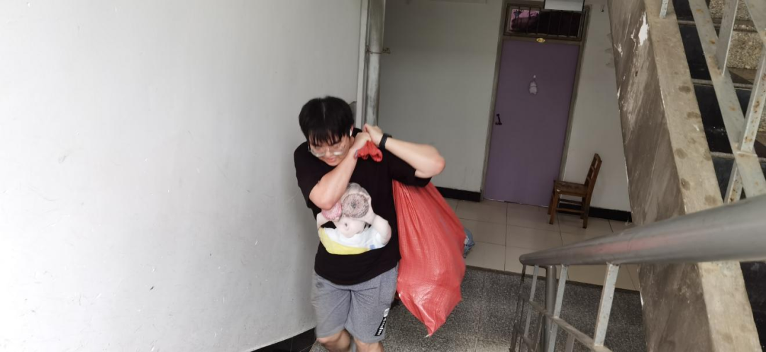夏天的闷热也给此次搬寝工作带来了不少阻碍,党员志愿者穿的衣服都被汗水湿透,大颗大颗的汗水从脸颊滑落。