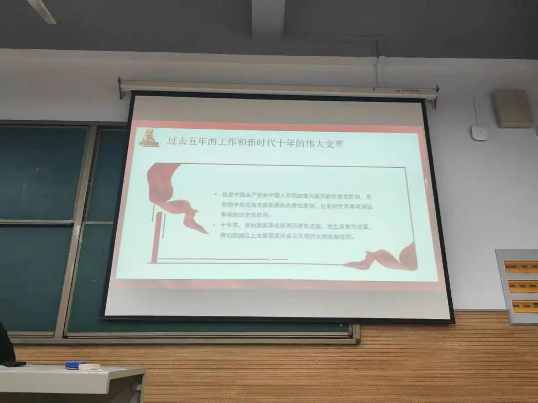 过去五年的工作和,新时代十年的伟大变革,蒋宇杰老师为我们深入讲解了此次大会的主题内容,蒋宇杰老师强调我们要紧跟党的脚步,追随党的脚步,响应党的号召,并激励我们要自信自强、守正创新,踔厉奋发、勇毅前行,努力做好新时代接班人。