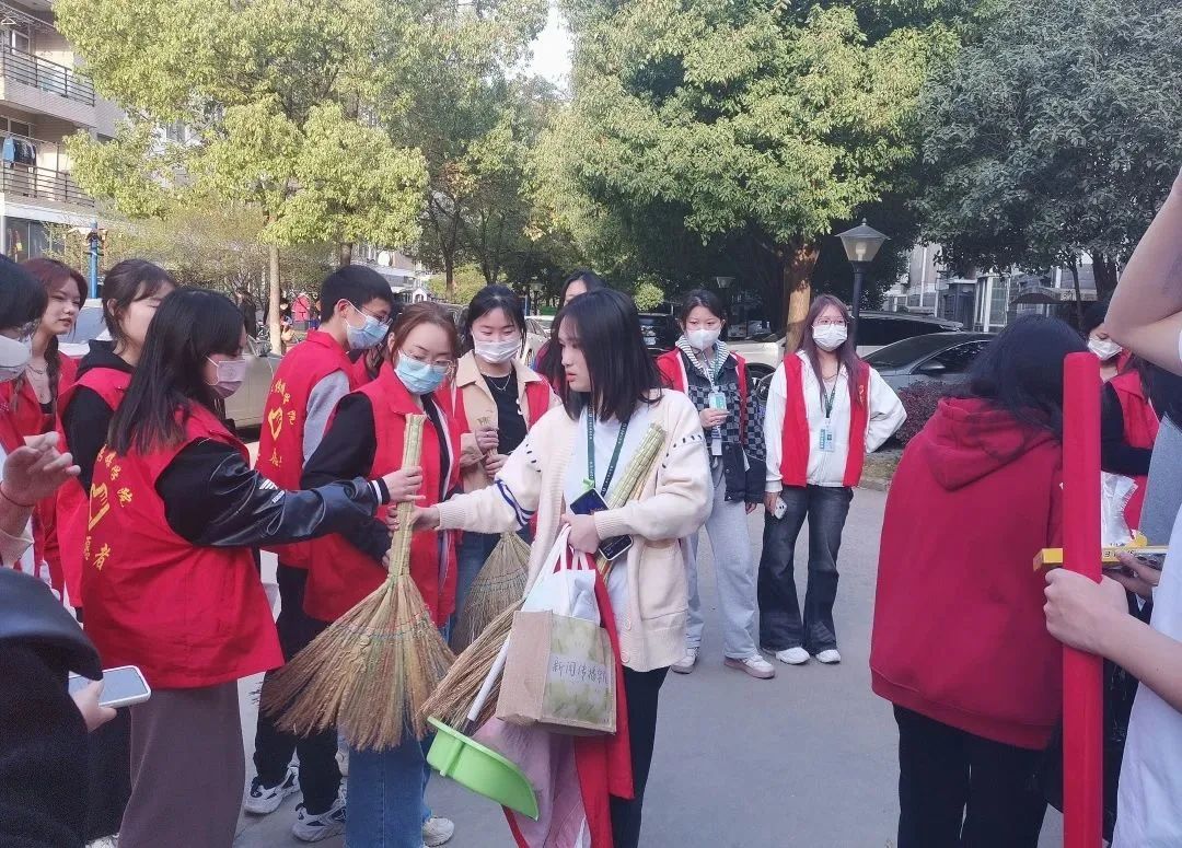 团学干部们以身作则,拿起扫帚,第一时间加入劳作的队伍,努力扫好每一块地。他们的带头起了很好的示范效果,同学们撸起袖子就开始加油干了,热情增长的同学们互相结伴同行,去清扫社区。