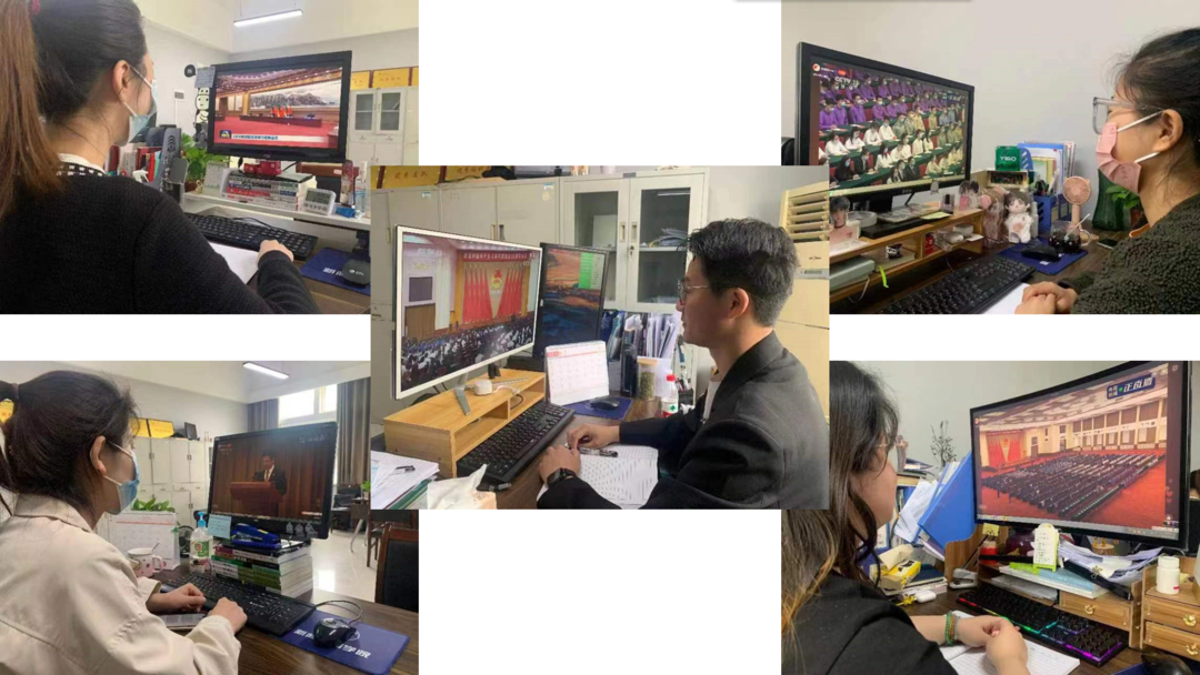 直播时,各级辅导员和同学们聚精会神,正襟危坐,每一个人的目光都聚焦在“中国共产主义青年团成立100周年大会”的直播画面之中。场上只有主持人在进行大会的开始宣讲的声音。