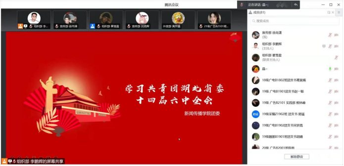 本次会议秦书记带领同学们深入学习了共青团湖北省委第十四届六次全会工作报告,对“关于做好庆祝建团100周年有关工作”做出了具体要求。秦书记表示共青团的活动开展要聚焦到为党育人的任务上,做优“青年大学习”、“三下乡”等项目品牌,发挥其阵地作用,不断提升思想政治引领的针对性和实效性,引导员工增强对党的政治认同、思想认同和情感认同。