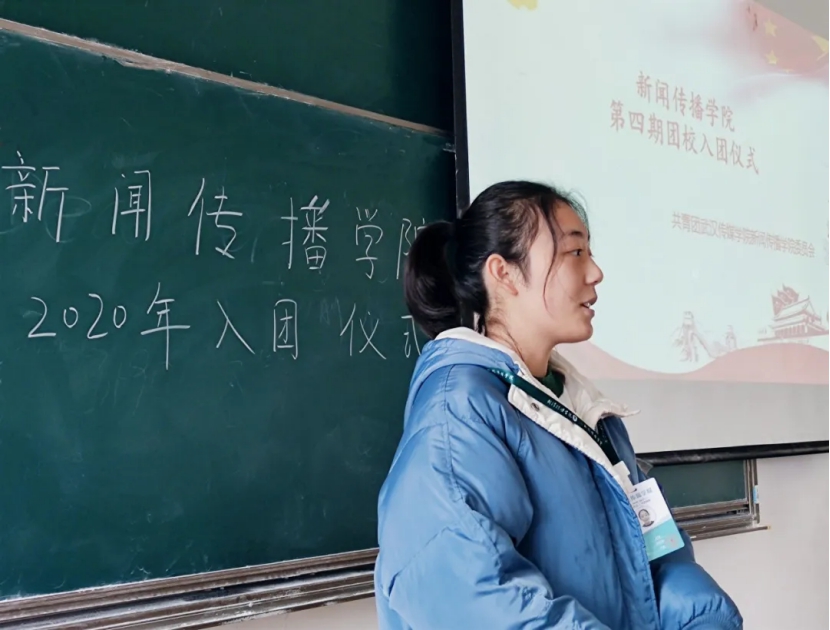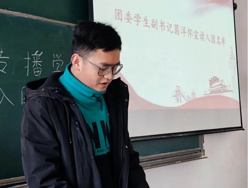 “我志愿加入中国共产主义青年团,坚决拥护中国共产党的领导,遵守团的章程……”紧接着,团委组织部副部长兰云带领全体团员宣读入团誓词。团员们的一声声誓词表达了对团组织的无限向往,表达了对团组织的尊敬。