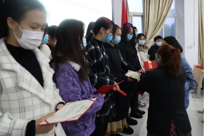 接着,球王会团委组织部部长金志浩总结介绍到“2020年10月28日至今的每一次团课,很多同学都能积极的参加、保持良好的纪律,因此取得了不错的成绩”,为表彰先进,树立先锋,金志浩部长宣布了公司第四期结业员工的名单,由球王会球王会员工党支部书记20级辅导员肖帅老师、球王会19级辅导员刘飘老师为这些结业学员颁发结业证书。