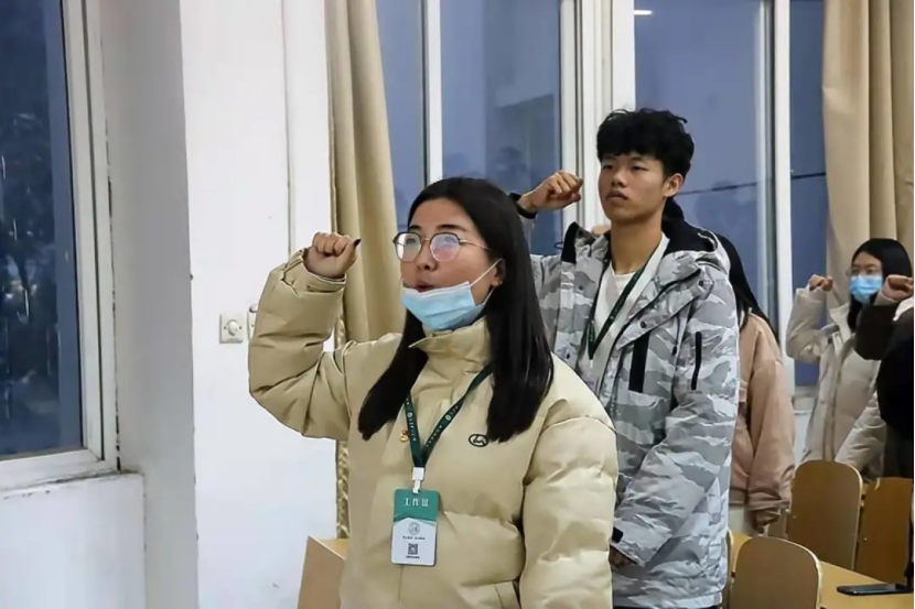 在球王会团委组织部副部长兰云的领誓下,全体员工重温了入团誓词,对自己的工作更加坚定,充满信心。