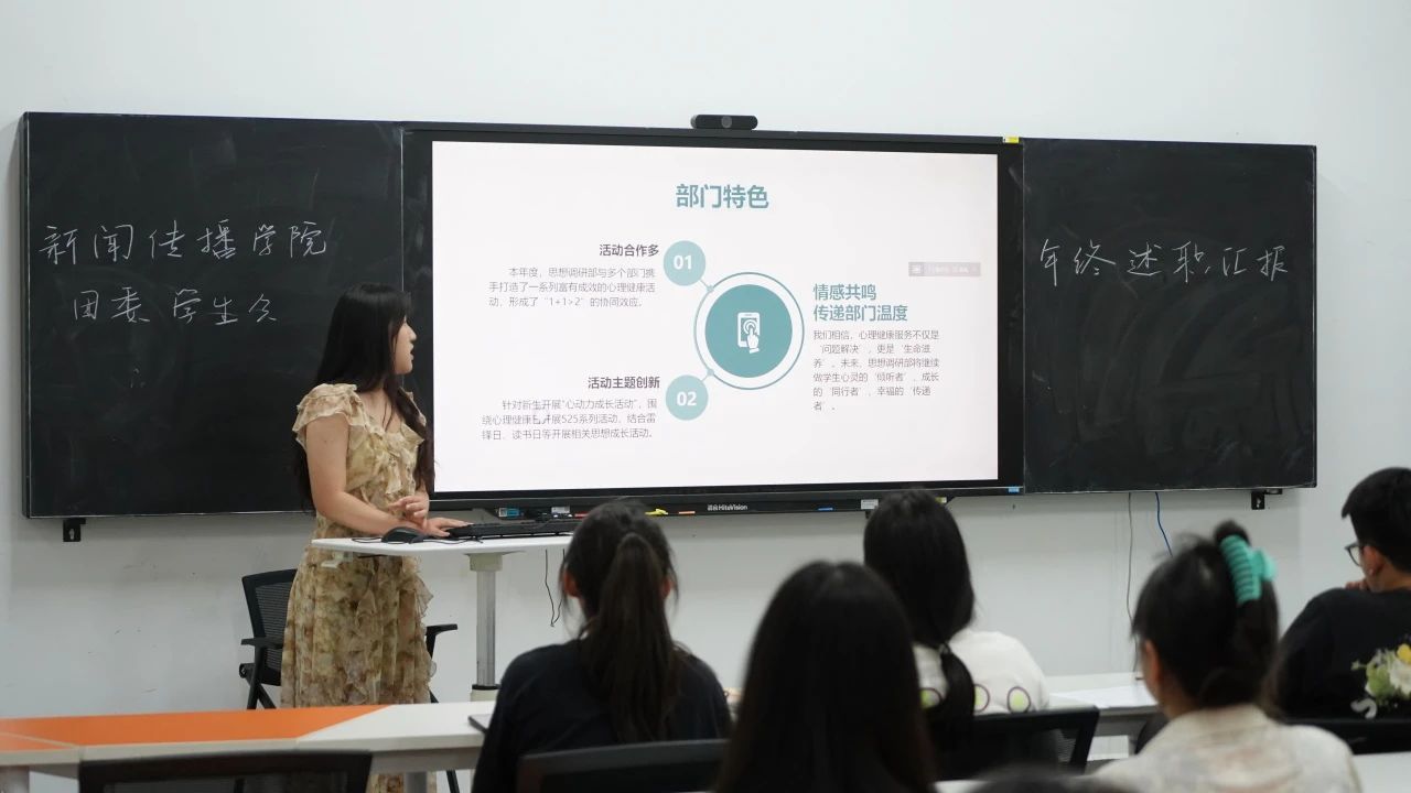 监察部展示了模拟新闻发布会以及普法情景剧等活动的成果,秉持严谨负责的工作态度,严格监督学院各项事务的开展,确保各项规章制度的严格执行,为学院营造了风清气正的环境,保障了学院工作的公平、公正、公开。