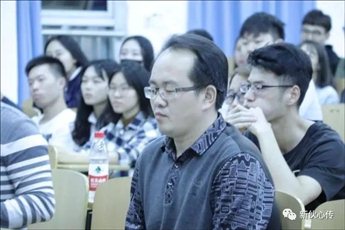 开班典礼结束之后领导依次退场,由球王会辅导员肖帅进行2018年骨干精英培训班的第一讲。
