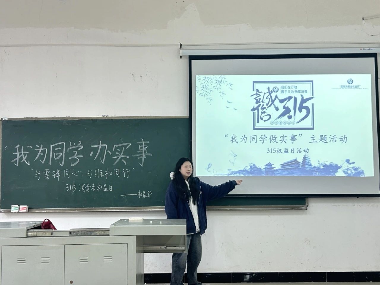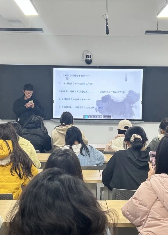 最精彩的部分莫过于答题环节。同学们积极举手抢答。每一个问题都像是一次小小的挑战,促使我们回顾雷锋同志的事迹,反思在日常消费中可能遇到的陷阱,了解3.15消费者权益日的来历和维权手段。这种互动式的学习方式极大地提高了同学们的参与感和兴趣,使得学习变得更加生动和有效。