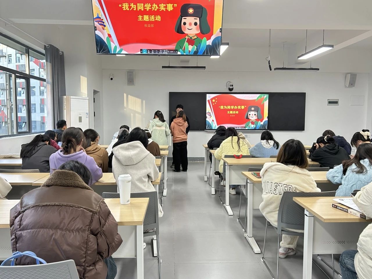 在观影活动结束后,由部长展示维权相关知识小题目,同学们通过学习通抢答的方式回答问题,回答正确的同学们都得了一份小礼品。