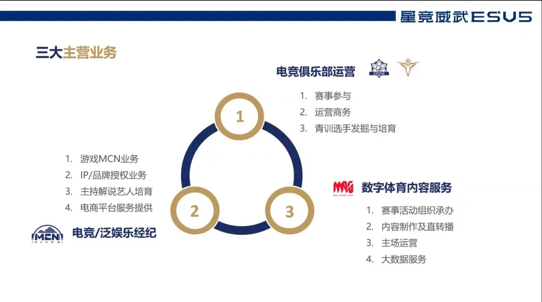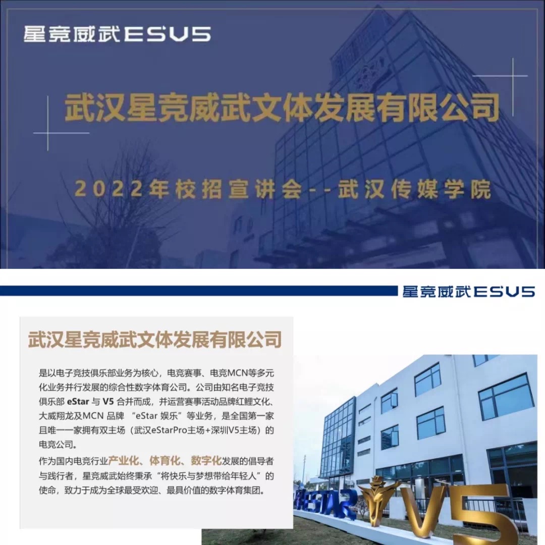 会议的开始主要介绍集团的基本信息,武汉星竞威武文体发展有限公司是以电子竞技俱乐部业务为核心、电竞赛事、电竞MCN等多元化业务并行发展的综合性数字体育公司。公司由知名电子竞技俱乐部eSTAR与V5合并而成,并运营赛事活动品牌红鲤文化、大威翔龙及MCN品牌“eSTAR娱乐”等业务,是全国第一家且唯一一家拥有双主场的电竞公司。