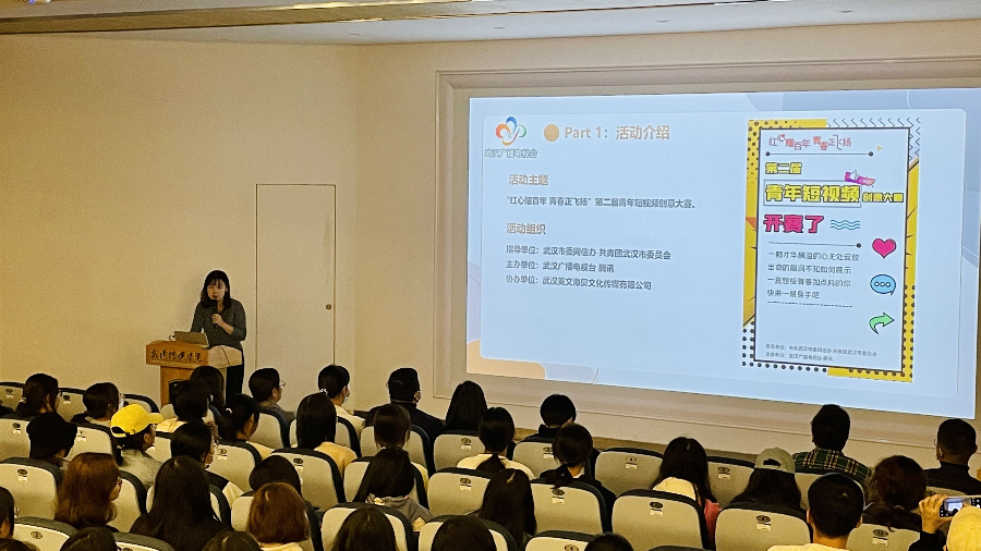 10月19日14:00,第二届青年短视频创意大赛校园宣讲会在球王会3101教室召开,公司21级网络与新媒体、广告班的同学参与了本次会议,武汉市委网信办宣传处、武汉广播电视台和公司的领导们作为嘉宾参与了本次讲座。下面就跟着新小传的脚步走进这场宣讲会,一起看看都有哪些干货吧: