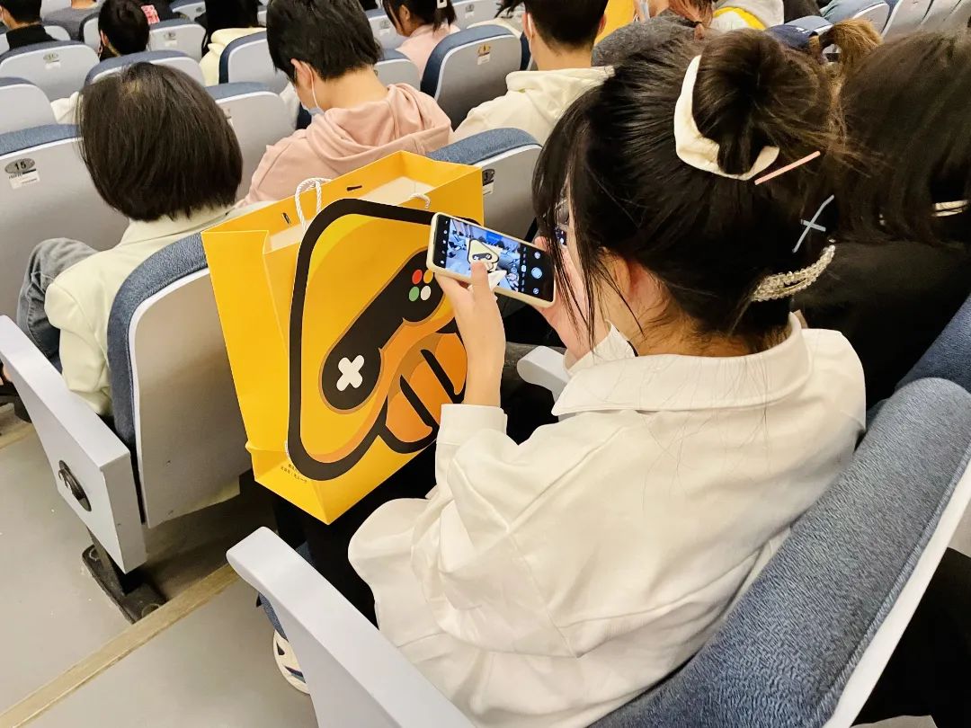 安华飞老师还在现场和同学们进行了互动,例如播放视频后让在场的同学指出其制作手法、询问同学们通过短视频学习到了什么等等,每次互动结束后安老师还给回答了问题的同学送出了小礼品。
