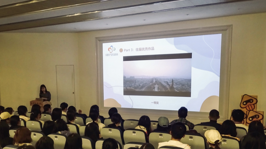 大赛宣讲会第一项议程,来自武汉广播电视台的张婷婷老师为同学们介绍了本次大赛的相关信息和大赛奖励设置。