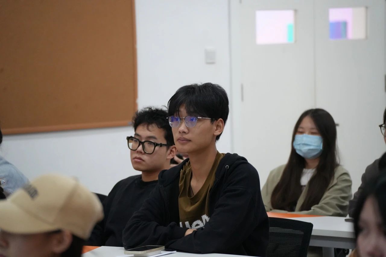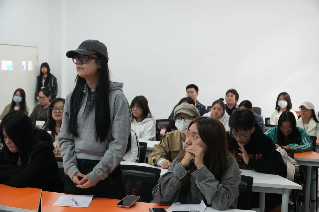 夏爽老师通过询问同学们有无制作纪录短片的经验,迅速拉进了与同学们的距离,同时引出了纪录短片中人员的分工,其深入浅出的讲解很快吸引了同学们的兴趣,让讲座气氛变得活跃起来。