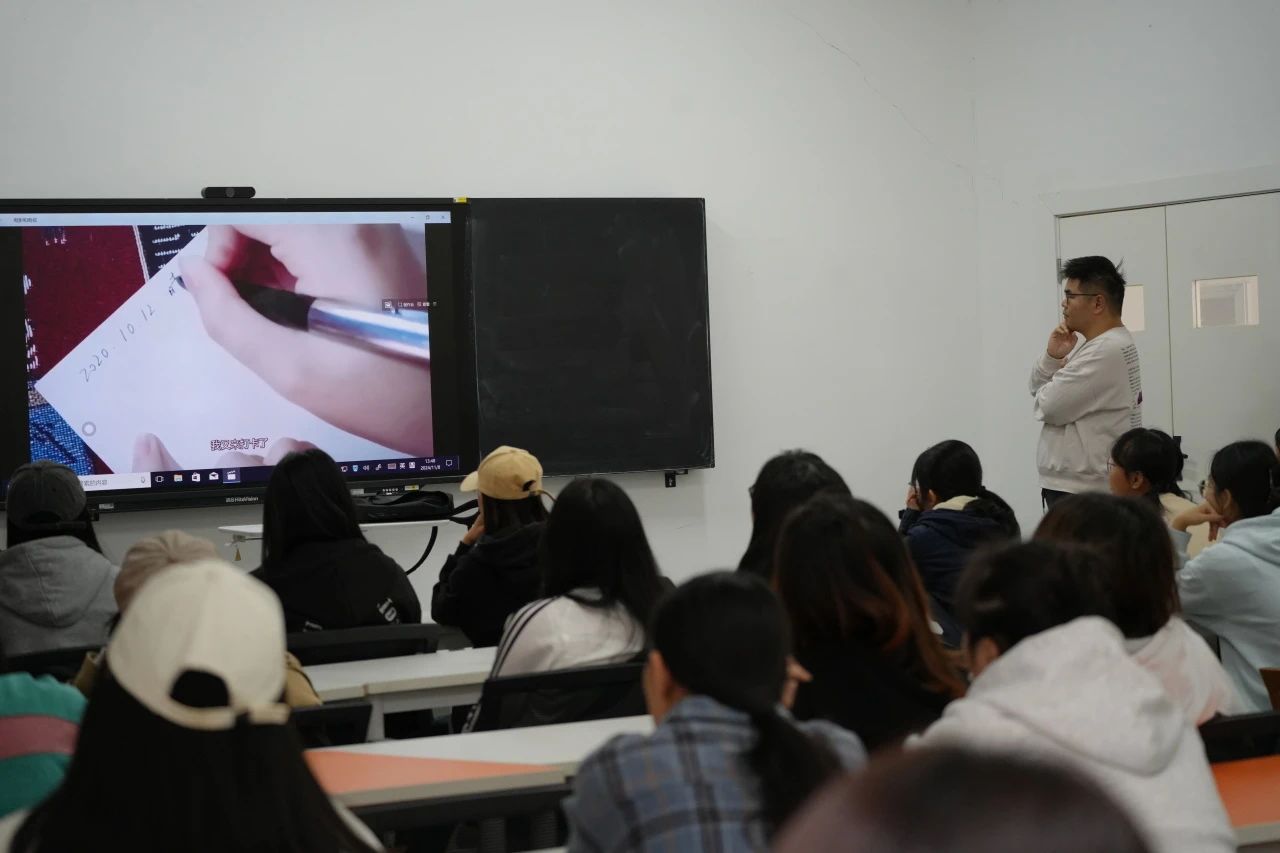 在放完短片之后,夏爽老师以“非遗”主题为引子,让同学们思考如何进行视频选材,然后认真解答,并以同学们的回答为例,讲解了纪录短片制作的具体步骤及现实意义。