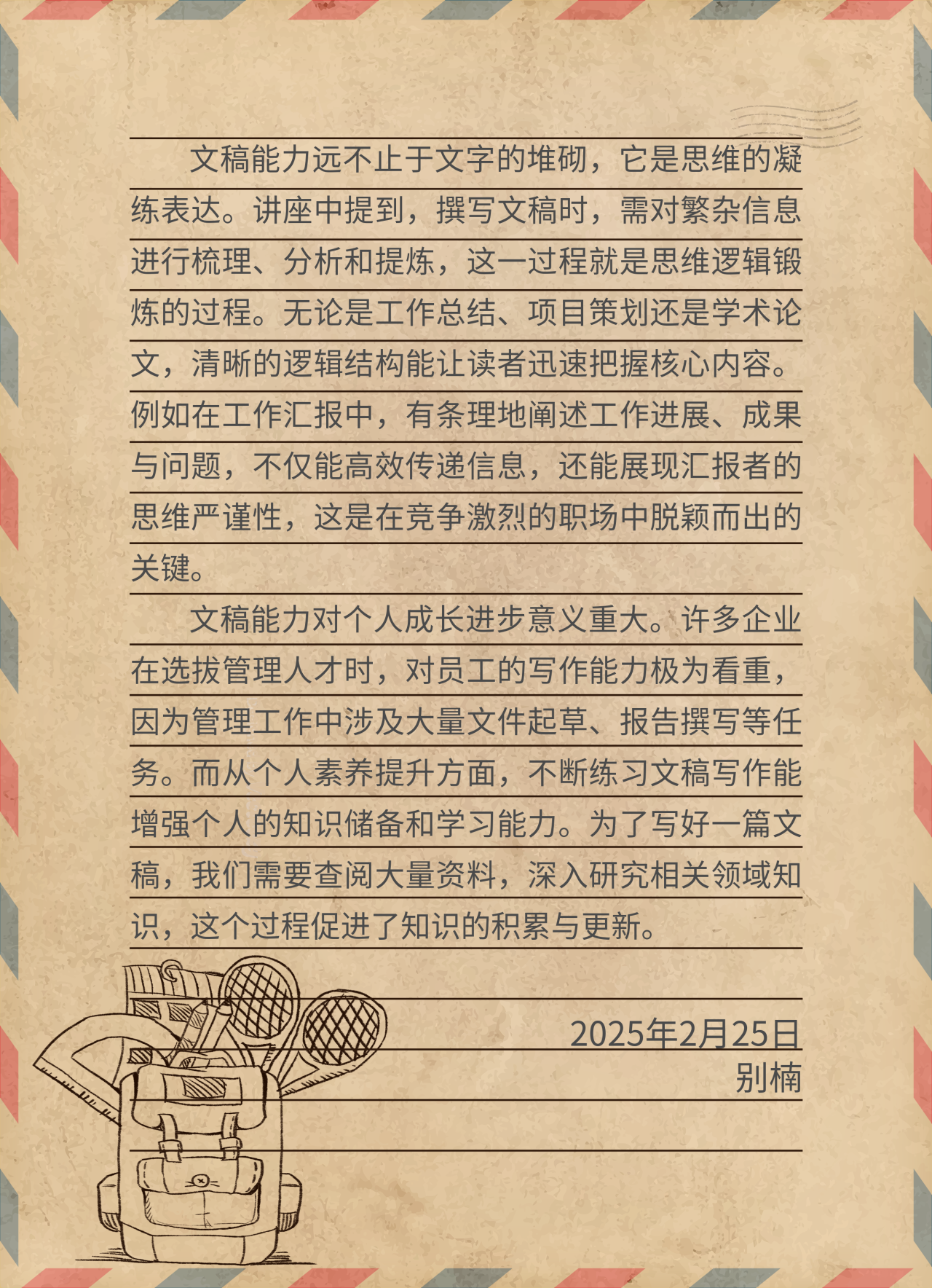 听了讲座,24级新小传们对文稿写作有了全新且深刻的认知,内心也满是收获后的充实与感慨。让我们来听听他们怎么说: