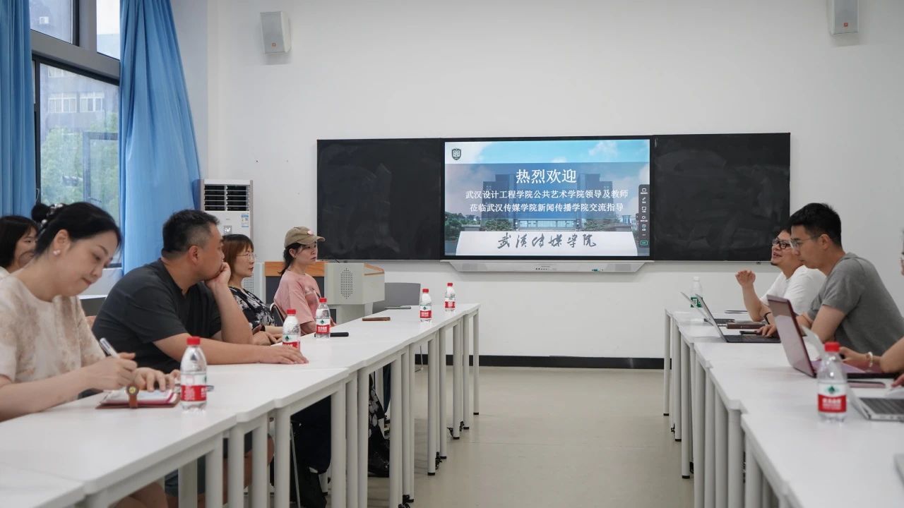 参加本次交流会的人员有武汉设计工程学院公共艺术学院副经理陆超,媒体传播系系主任徐正刚,副系主任尚妍,以及骨干教师张楠、孙蕾、李琳、宋佳、赵晨、余玥瑶、邹晴鑫。体育官网经理赵倩、副经理张少君,广告学系主任杜溪,融合新闻系主任、教工支部书记卢愿,传播学系主任宋博雅,传播学系副主任马旻,网络与新媒体骨干教师李军贤,以及教师代表徐冬莹、卢思杨、付雅纯。