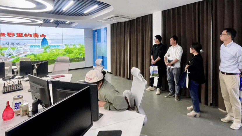 图:会后参观指挥大厅,了解青山融媒体中心运营模式、产品制作、编发流程。