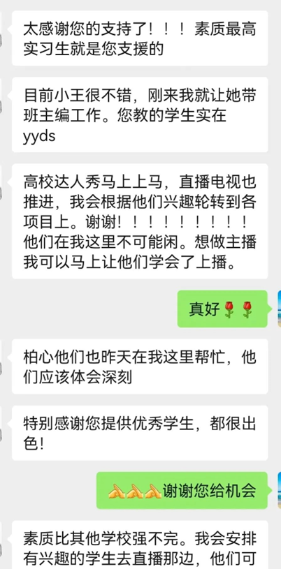 经过几个月的实习,各公司负责人纷纷对实习生们进行了赞许,认可了他们的勤奋好学、踏实肯干和团结互助的良好工作作风。实习生们能够及时有效地完成公司领导分配的任务,善于思考,并举一反三。同时,能够很好地遵守每个公司的各项规章制度,没有旷工和早退现象,与其他新老员工相处也甚是融洽,展示了公司良好的教学成绩,更是充分体现了当代青年的良好精神。